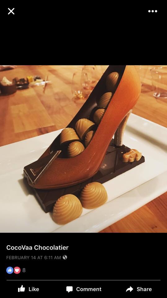 Chocolate shoe filled with espresso caramels